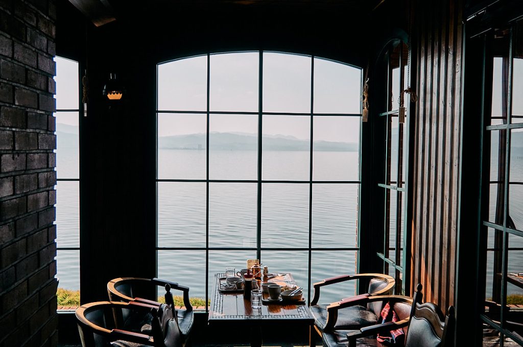 確かにガラス越しの宍道湖が素敵過ぎる空間!