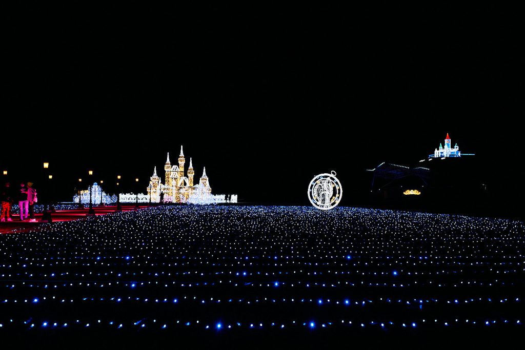 反対側のメインエリア(芝桜が咲くエリア)にはグラデーションのイルミネーション。
